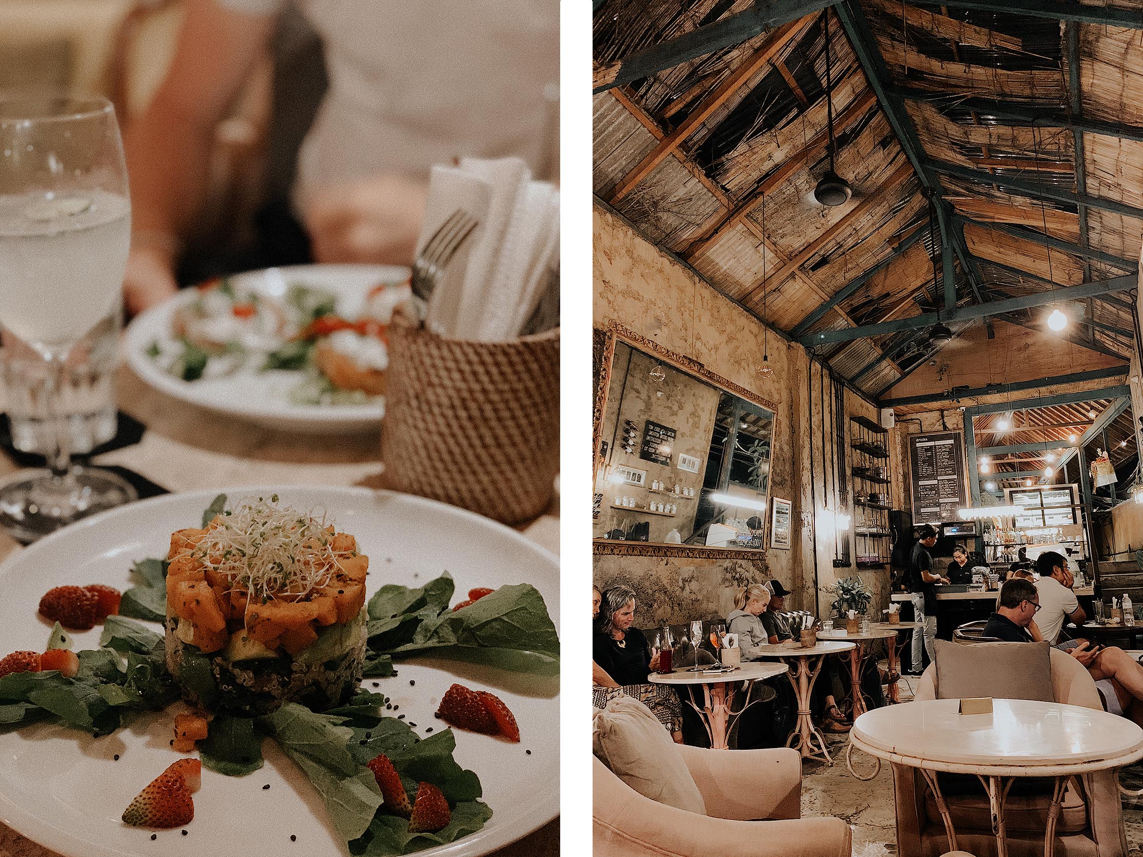 Akasha Restaurant – Kubu – Clear cafe Ubud – Avocado Warung Ubud – The Seeds of life – Hippie fish Ubud – Sayuri healing food cafe – Warung Pondokmadu – Folk Pool & Gardens – Habitat – Bonito Ubud – Dumbo (Italien) – Night Rooster by Locavore (Bar) – Oia (resto grec)