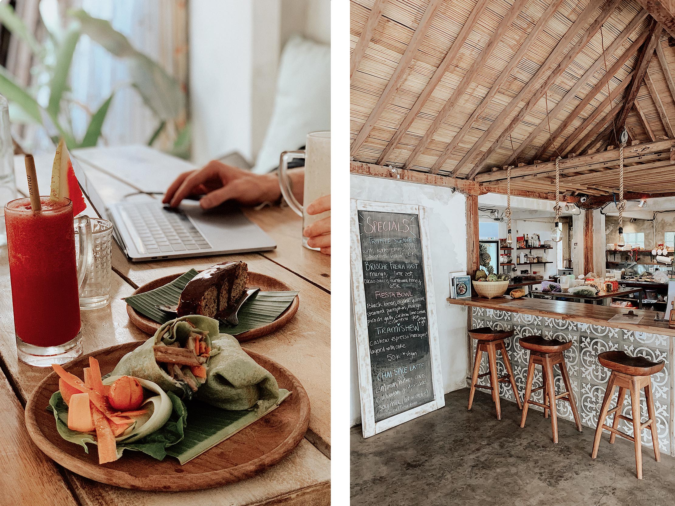Secret Spot – Dojo Bali – The Mocca – Shady Shack – The Loft – Motion café – Tugu Bali restaurant – Ithaka Warung – Moana – I’Am Vegan Baby – Cafe Organic – Crate Cafe – Nude – Sunny cafe – Kynd community – Bola Bali – Nook – Shelter bali – Quince cafe – La Baracca – Peekaboo – Cocomo Canggu – Essential