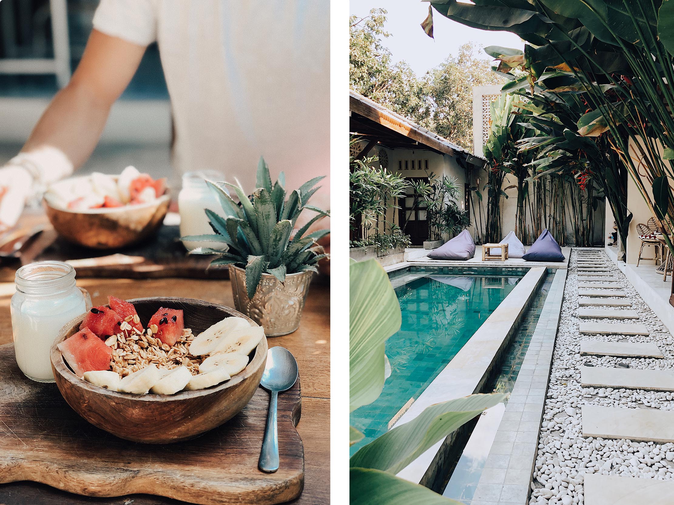 Nous avons dormi à l’hotel Dreamsea Canggu dans une chambre double privée. Il est vraiment canon, super bien situé, petit et très convivial. C’était parfait, je vous le recommande. On a réservé l’hôtel via Booking.