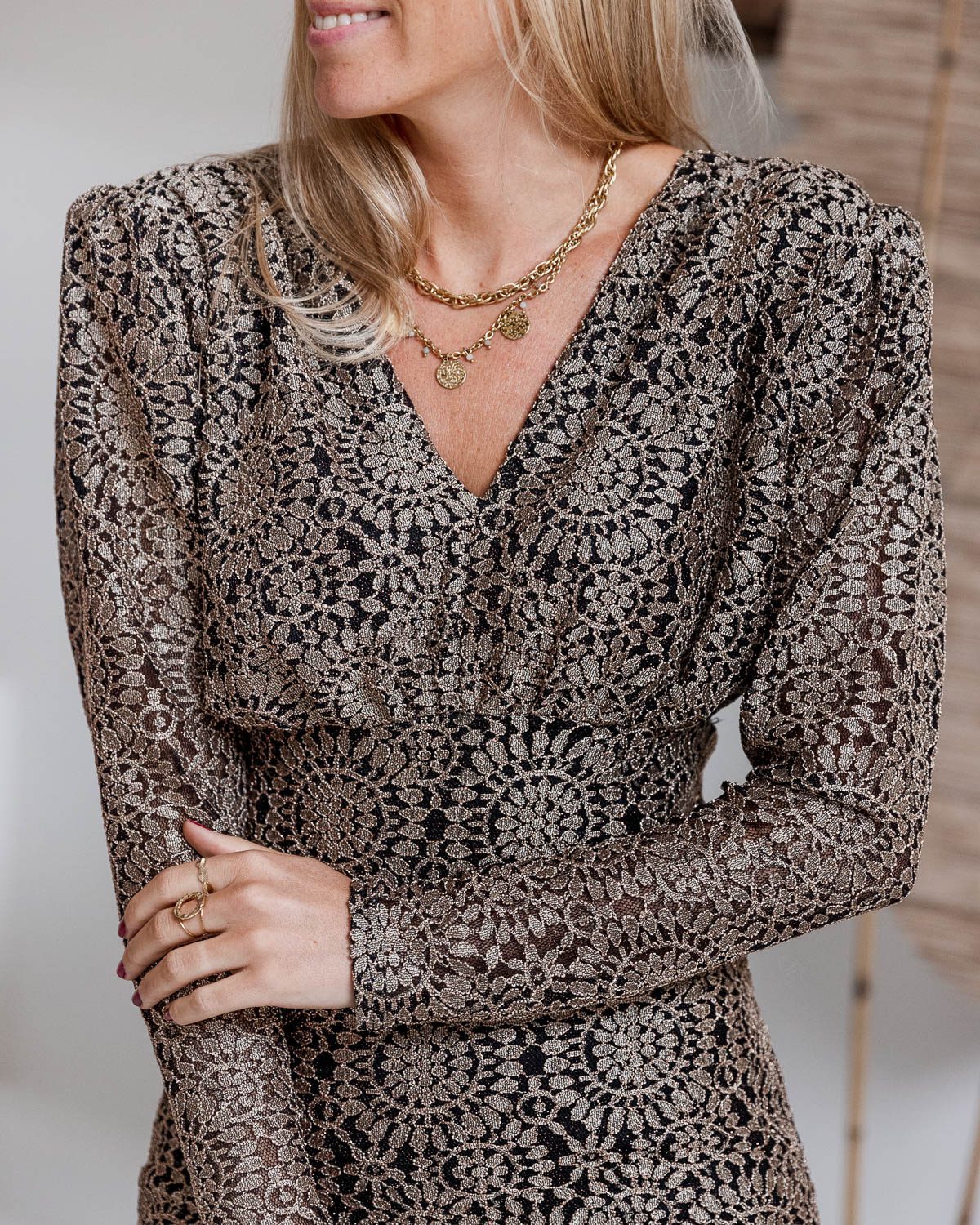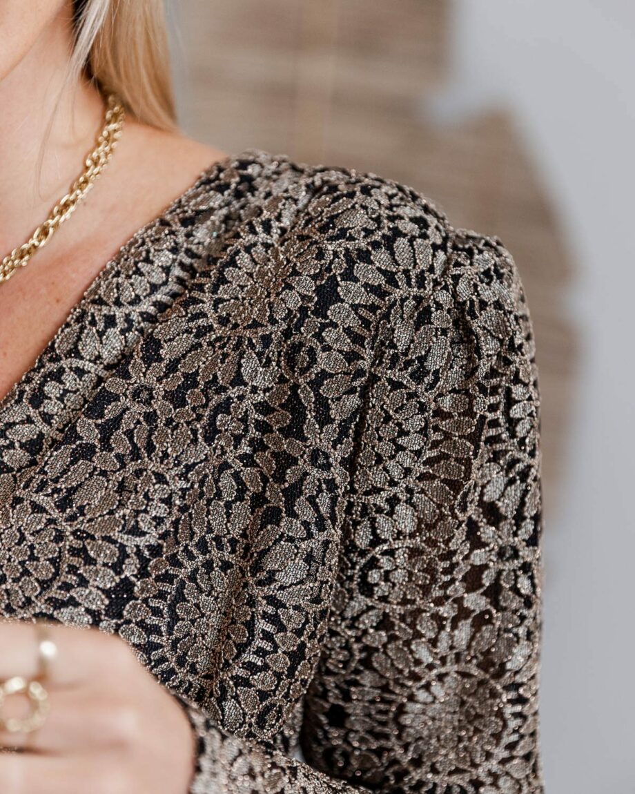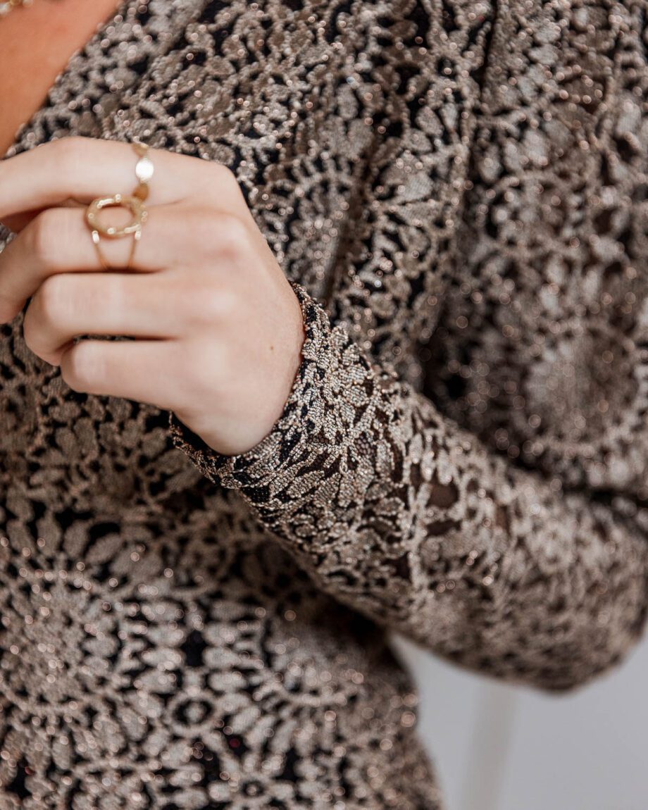Robe courte noire, motif doré pailleté