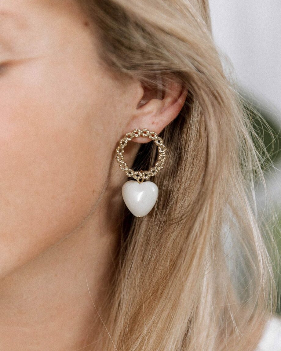Pendentif blanc nacré en forme de coeur