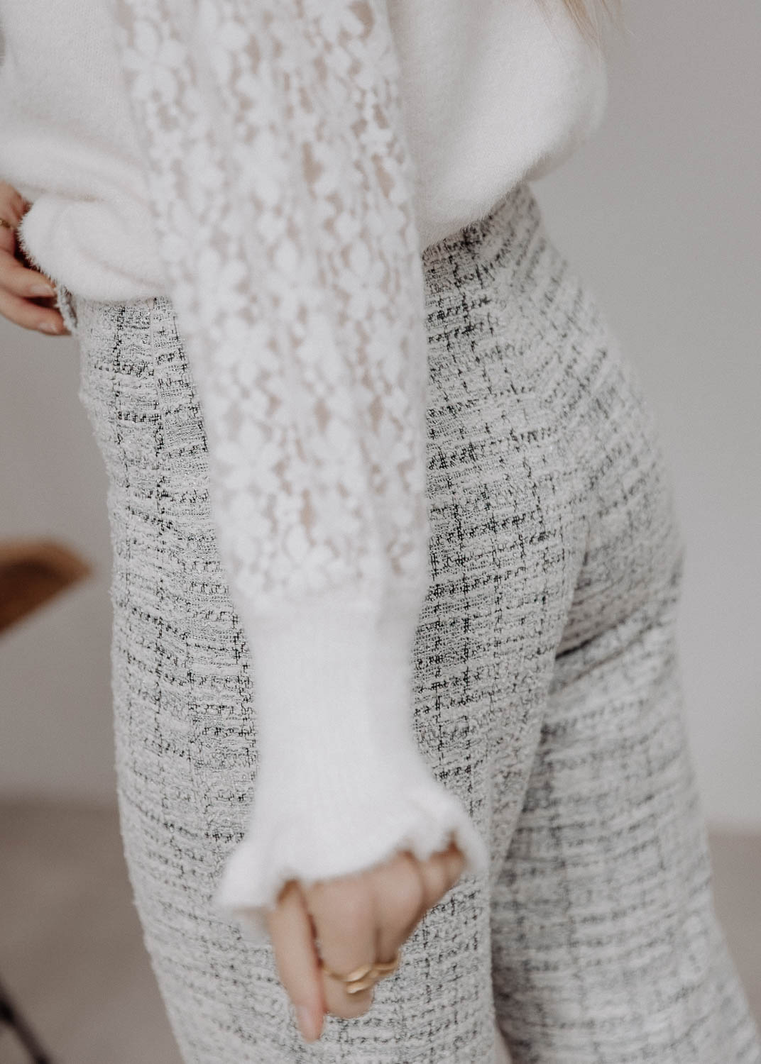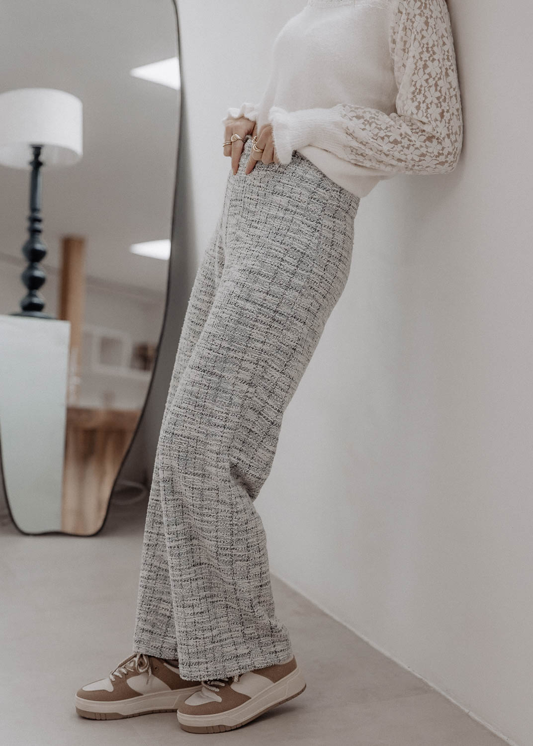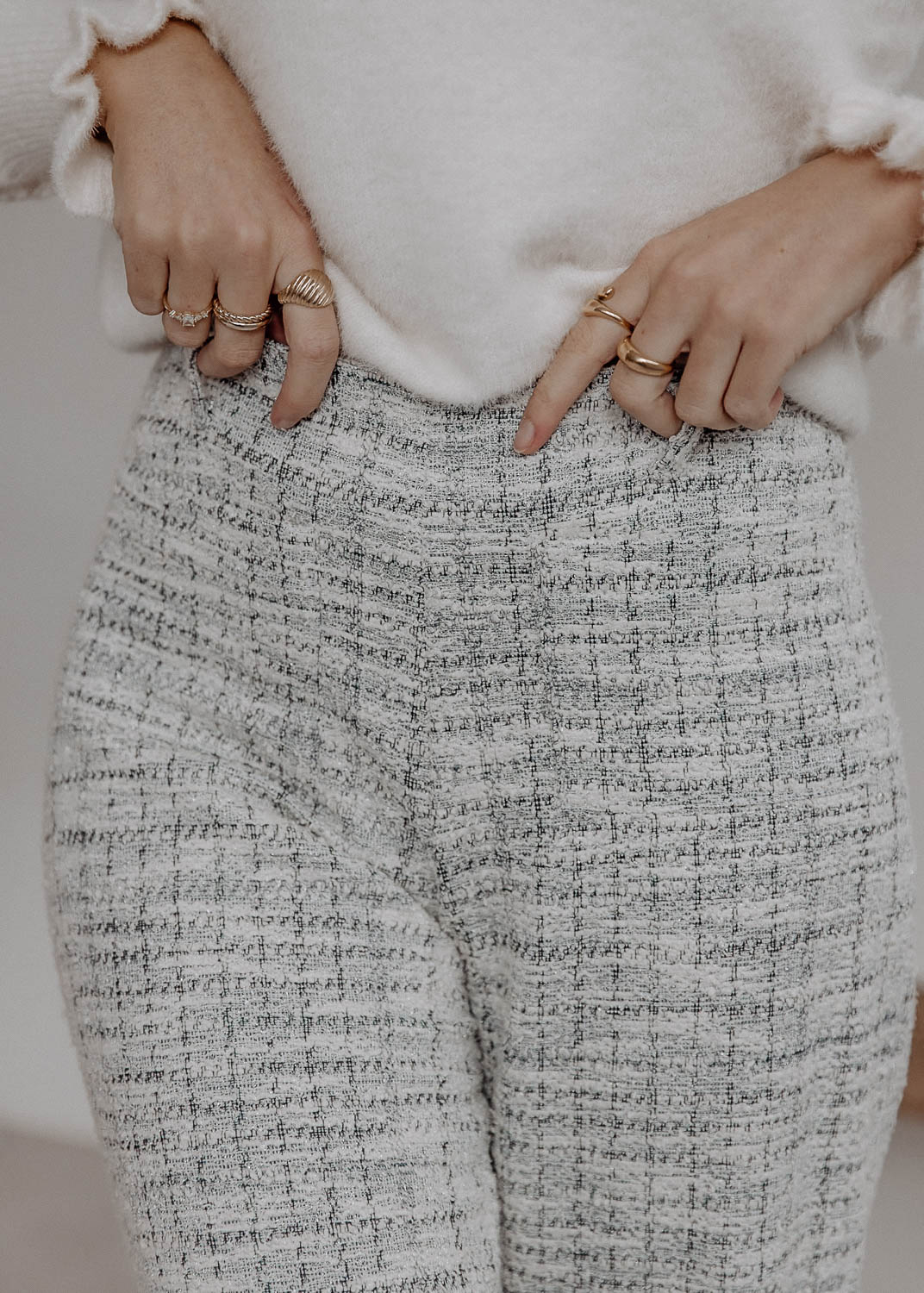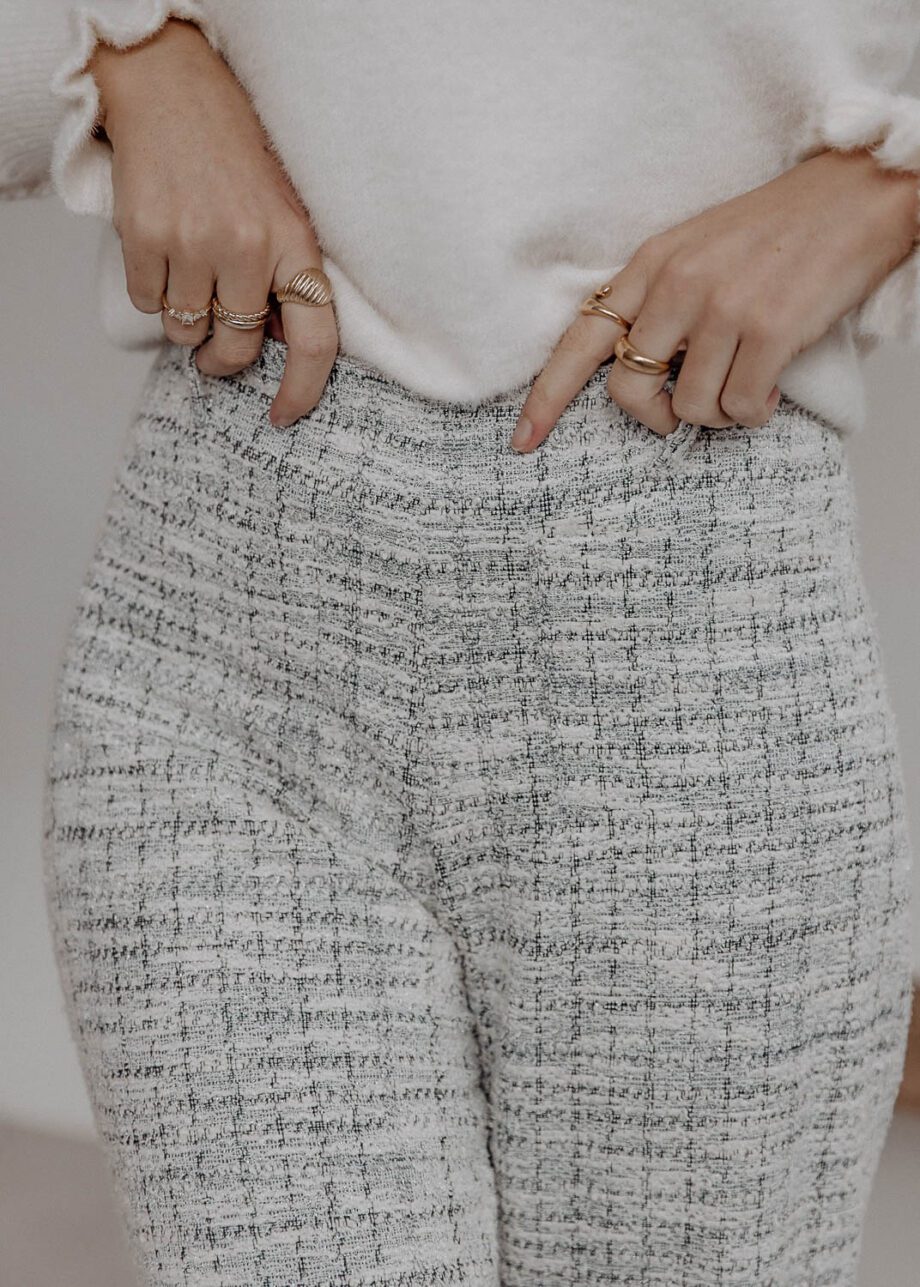 Pantalon en tweed bleu et blanc